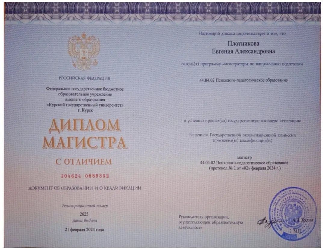 в ведущих университетах страны. Получение степени магистр в Московском государственном психолого-педагогическом университете и Курском государственном университете.